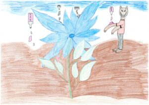 Die „Blaue Blume“ ist eine magische Blume aus meinem Jugendroman „Im Wald, da sind die Schweine!“. Sie begegnet dem Mädchen Nini auf ihrer Flucht vor dem gewalttätigen Wolfgang zunächst nur im Traum. In diesen Träumen ist Nini die „Blumenfreundin“ und behütet das Blumenreich.